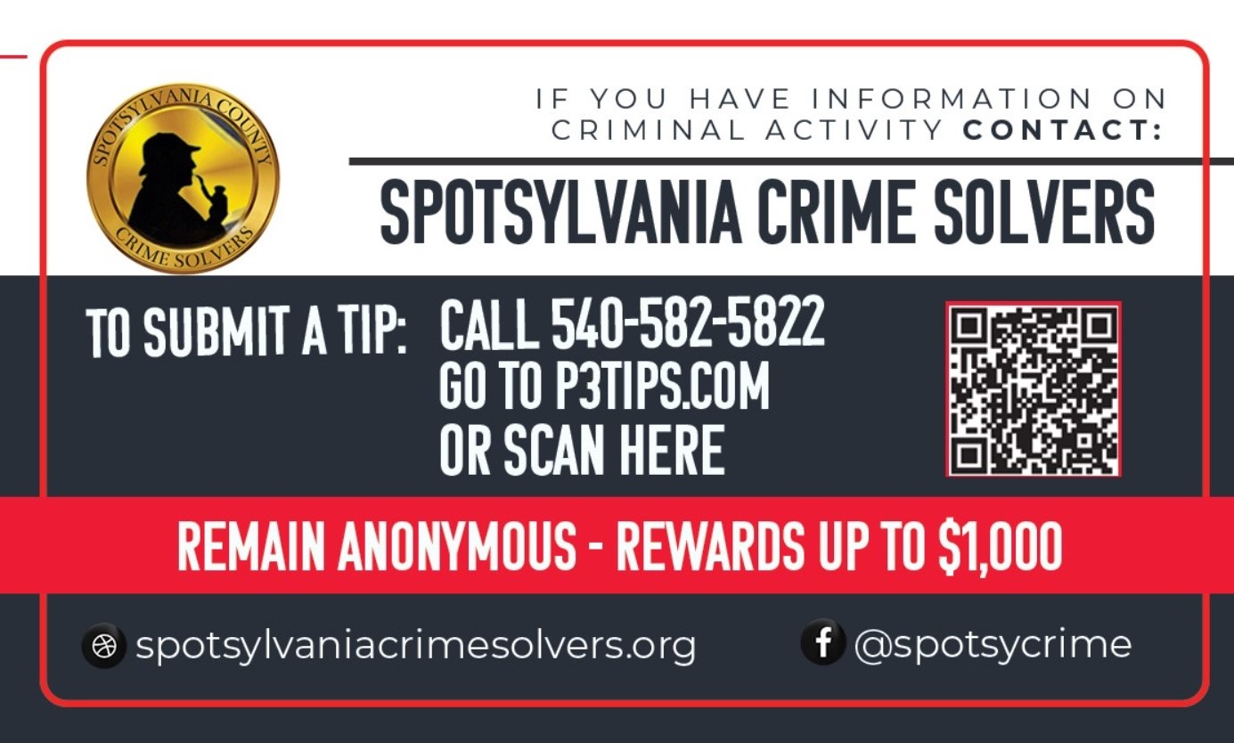 What is Crime Solvers? The Spotsylvania County Crime Solvers, Inc. is a community program geared toward public involvement in the fight against crime. Each week, unsolved crimes are selected as the crimes of the week. The facts are printed in the local newspaper. Spotsylvania Crime Solvers offers cash awards up to $1,000.00, and anonymity to people who provide information that result in the arrest or resolution of an unsolved crime, recovery of stolen property, or seizure of illegal drugs.